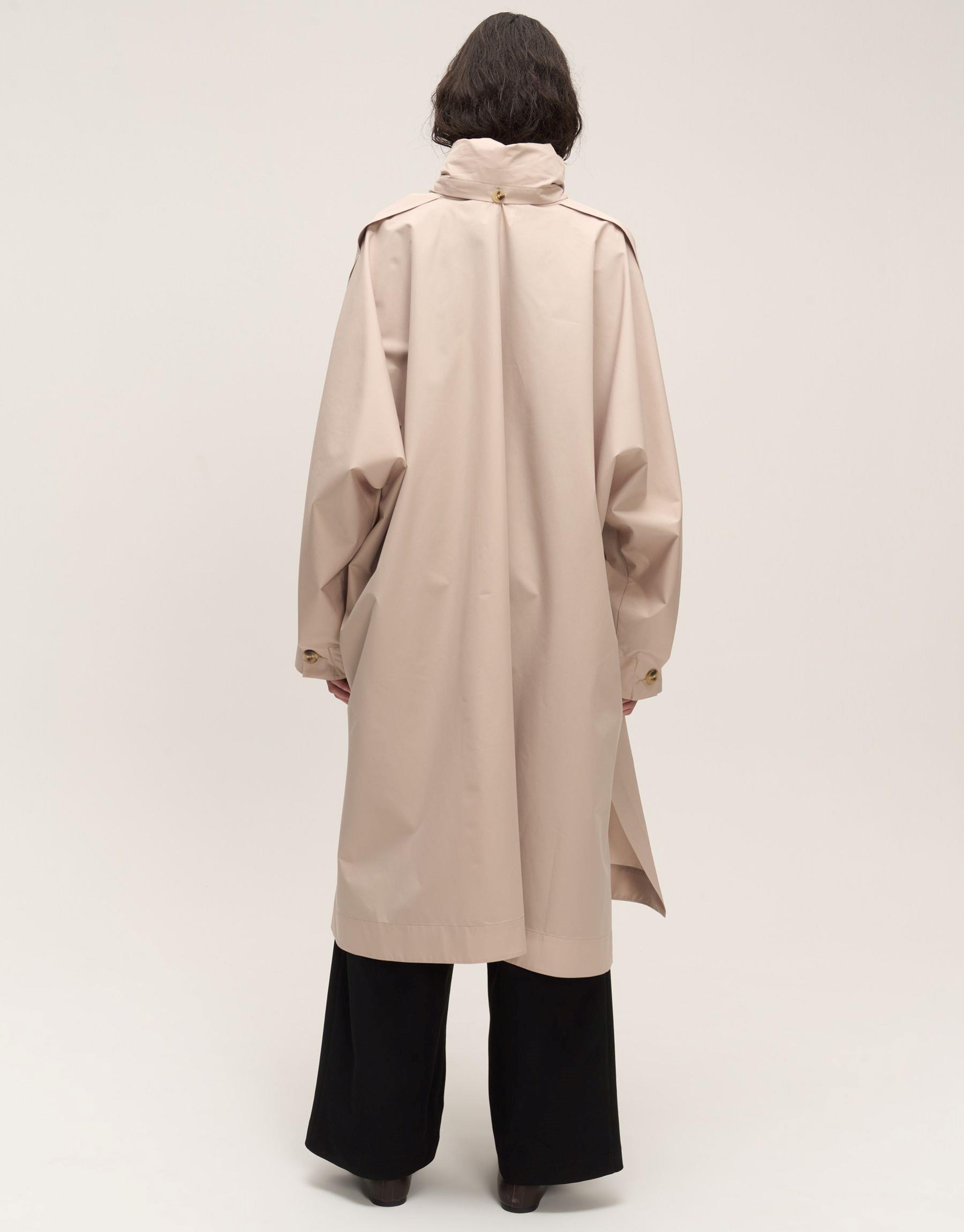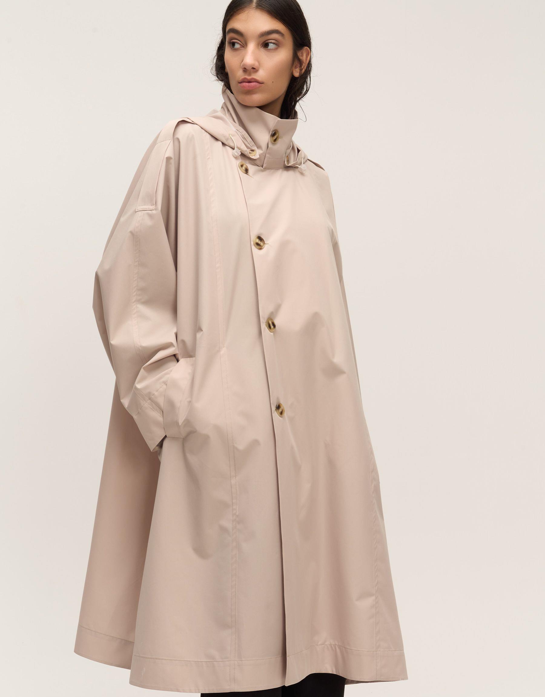Bayan Bej Kapüşonlu Oversize Yağmurluk | Qooqstore