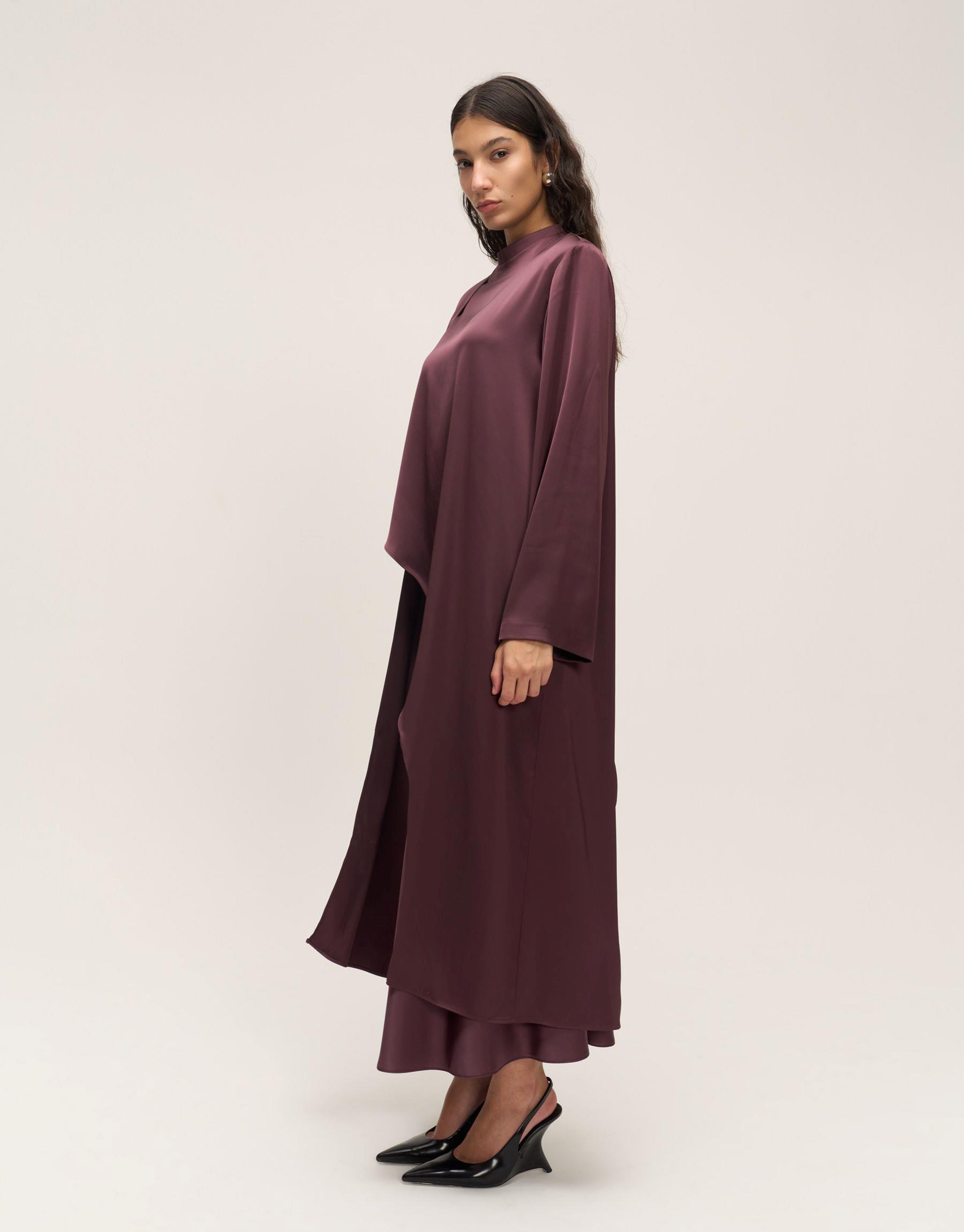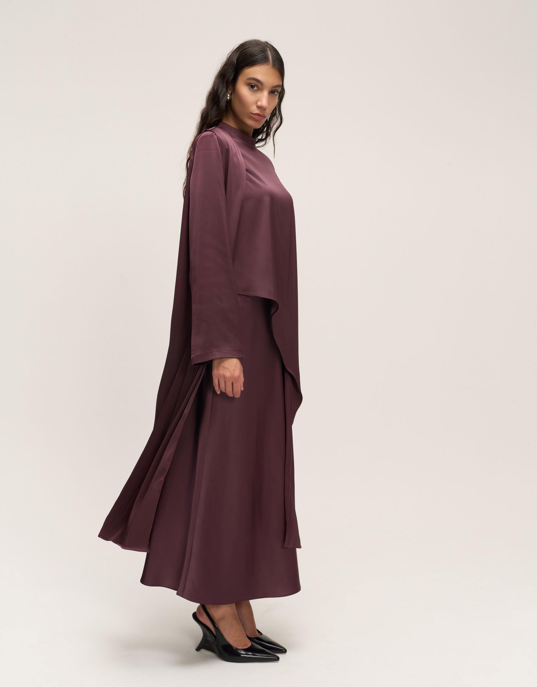 Bayan Bordo Asimetrik Saten Bluz | Qooqstore