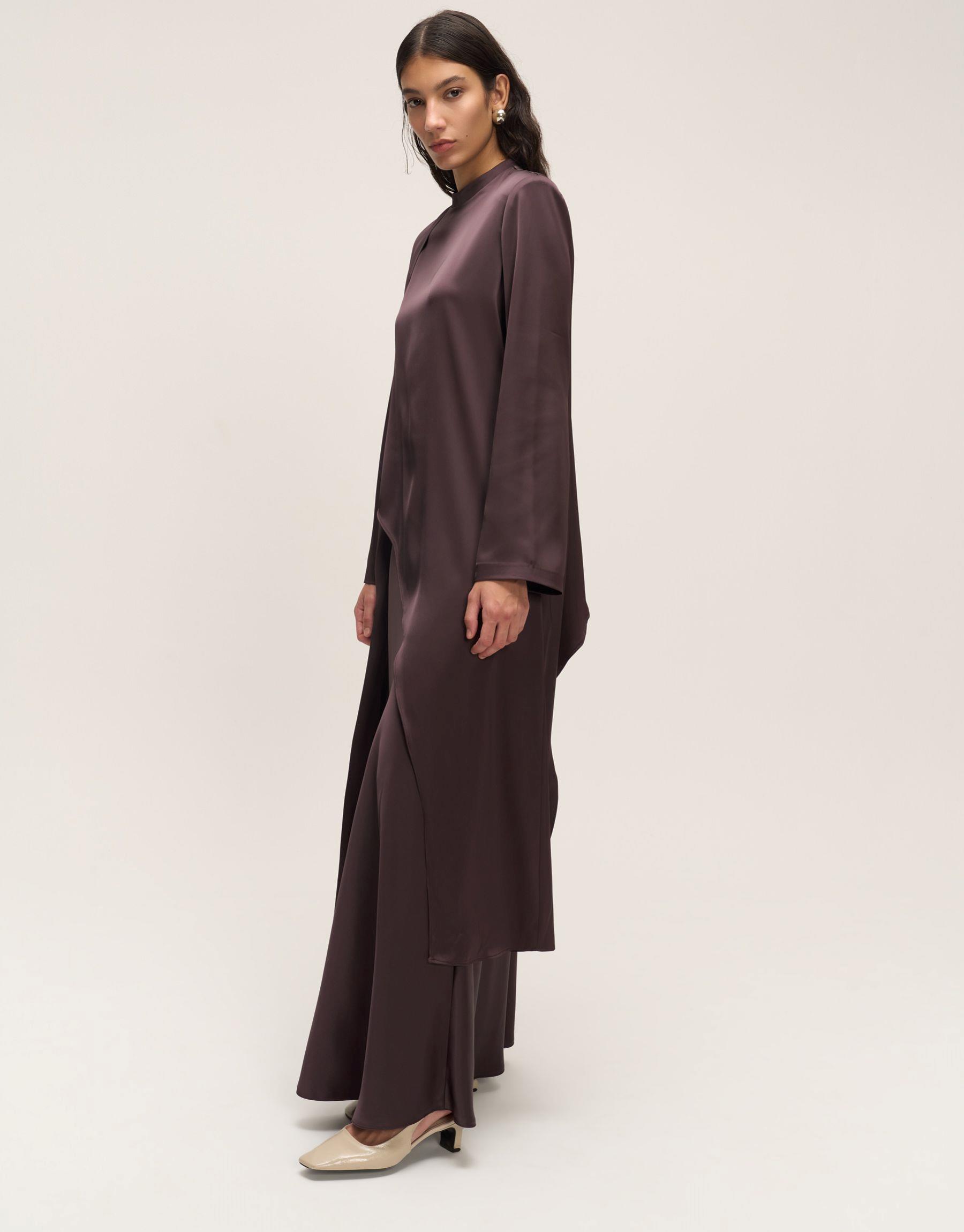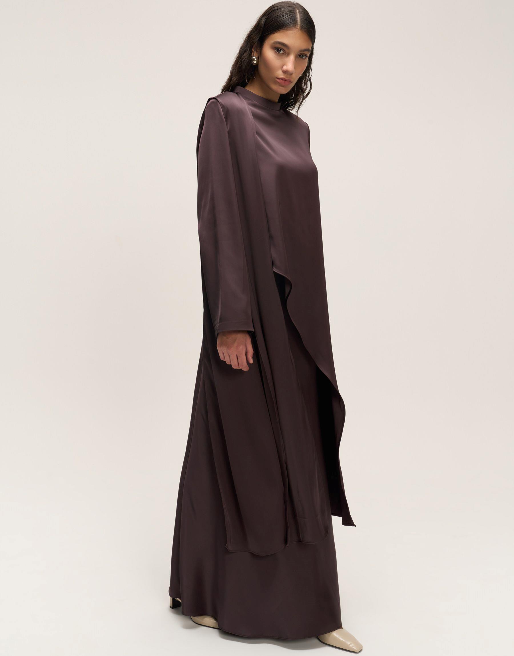 Bayan Kahve Asimetrik Saten Bluz | Qooqstore