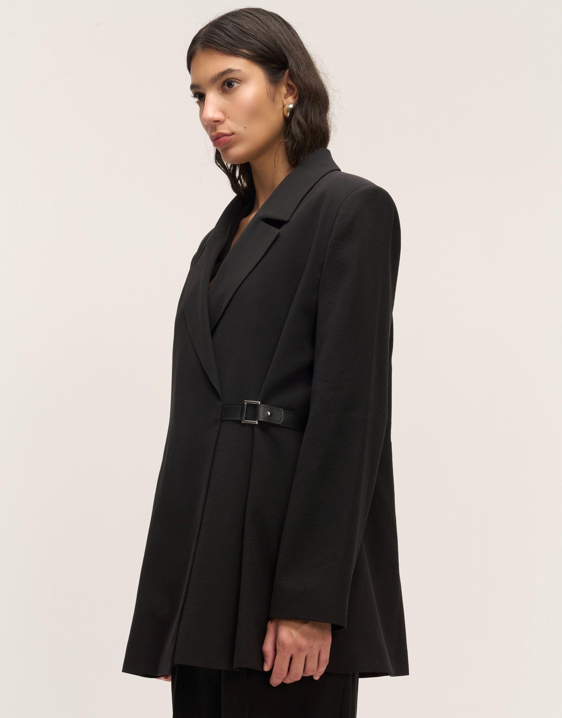Modal kumaş, Flato cep ve deri kemer detaylı.
