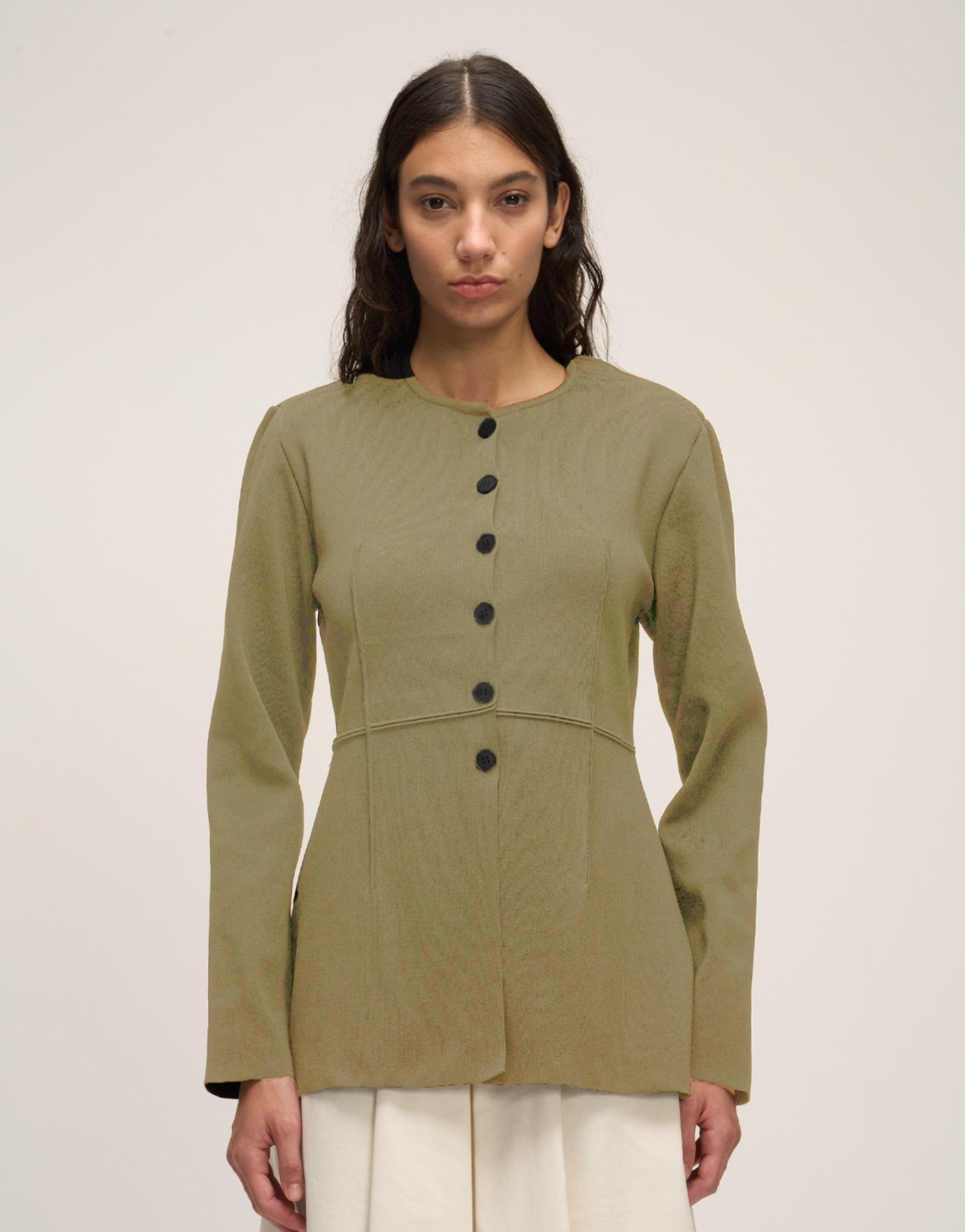 Bayan Haki Düğmeli Triko Hırka | Qooqstore