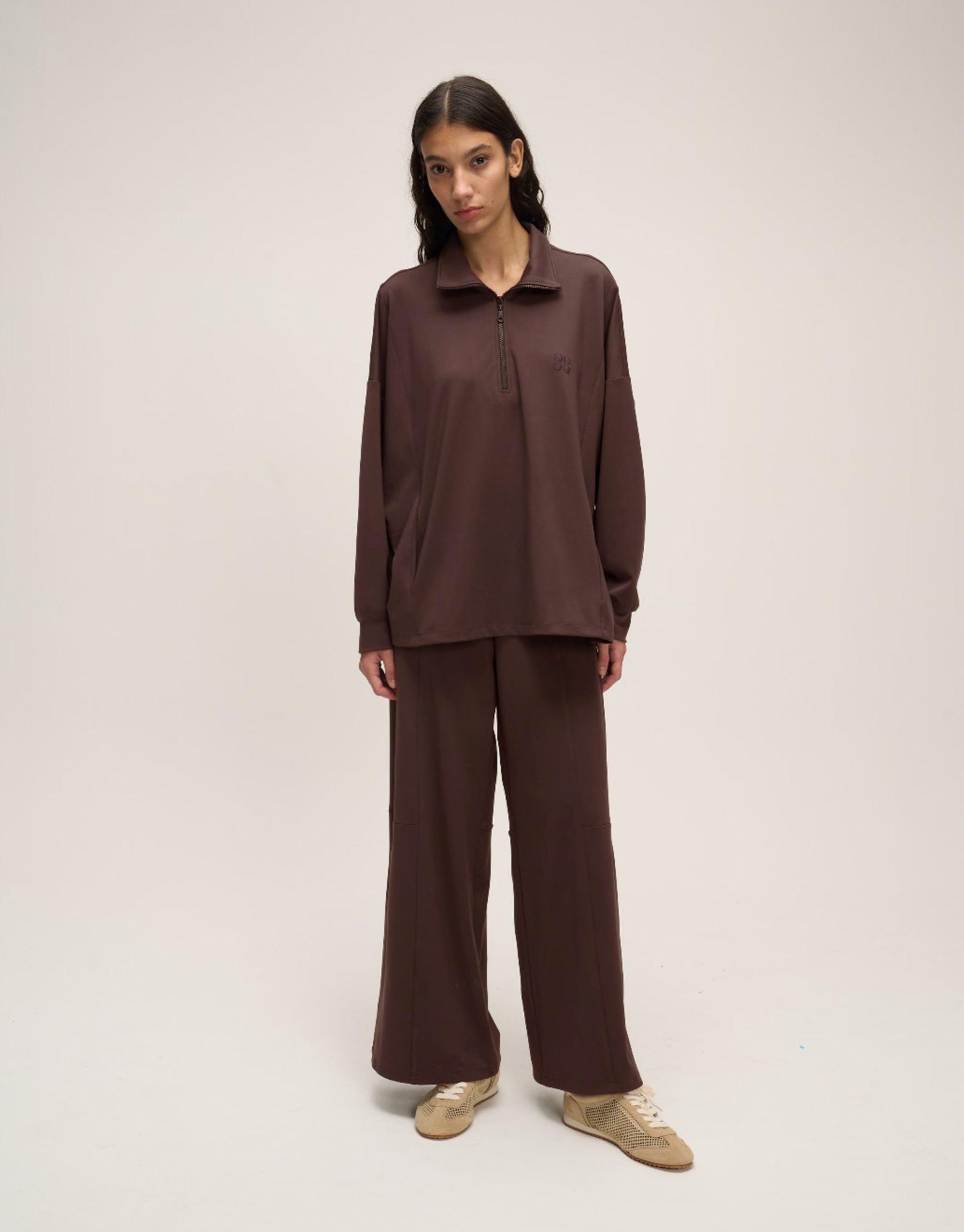 Bayan Kahve Nakışlı Sweat | Qooqstore