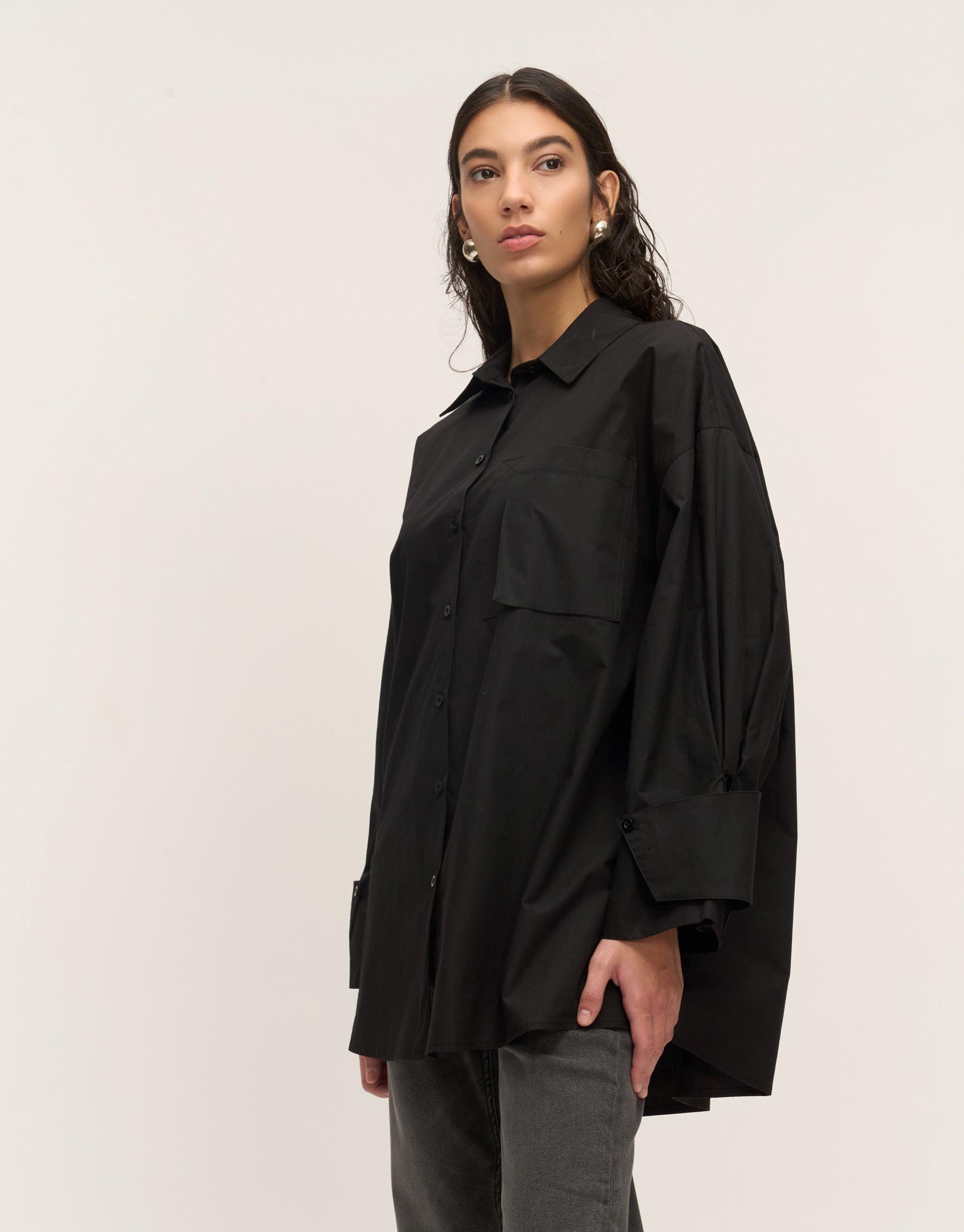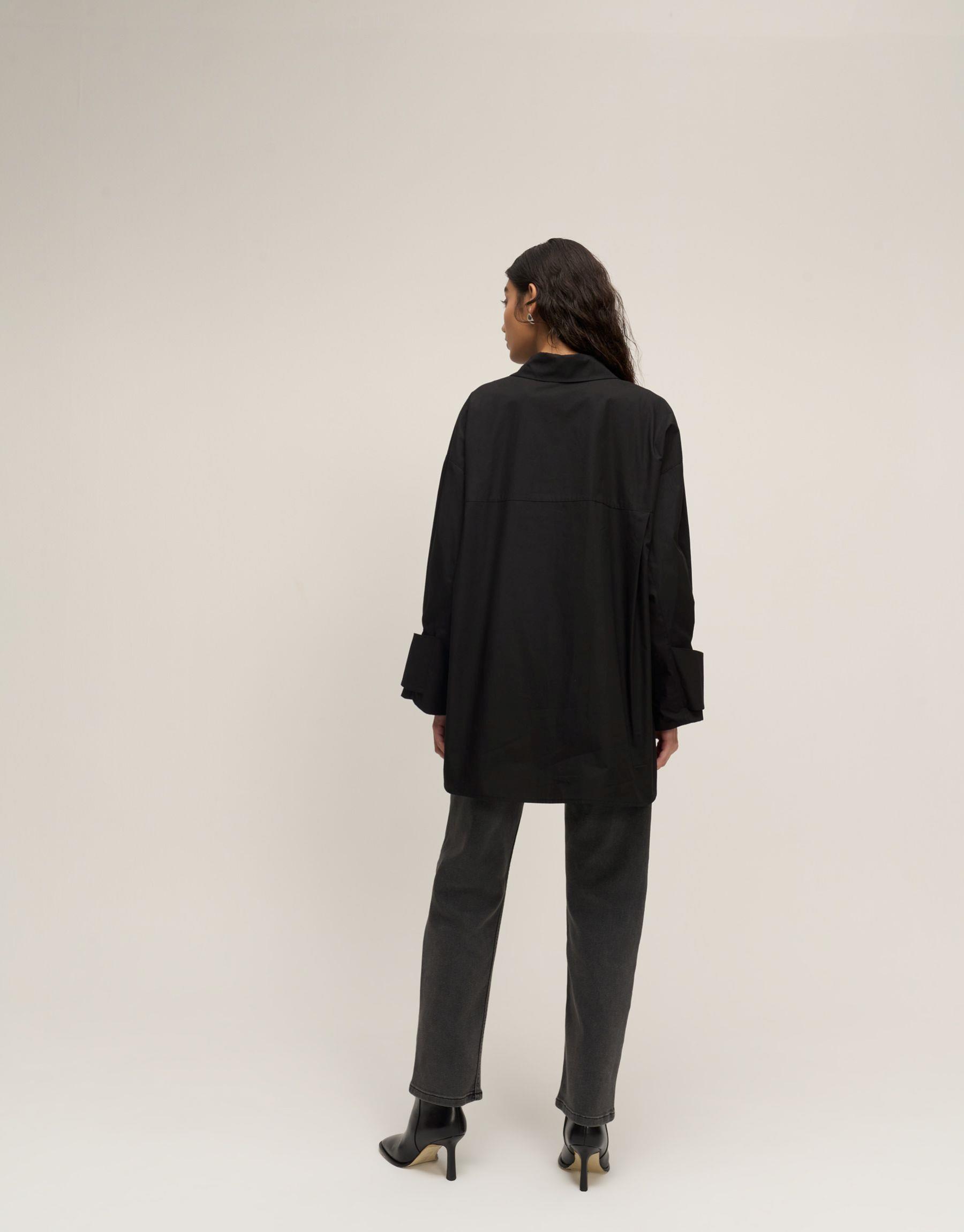 Bayan Siyah Apolet Bilek Detaylı Pamuk Gömlek | Qooqstore