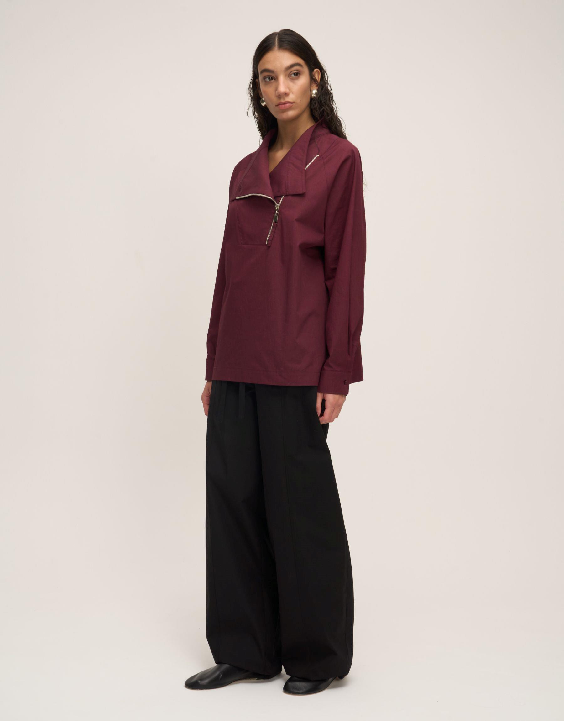 Bayan Bordo Fermuarlı Bluz | Qooqstore