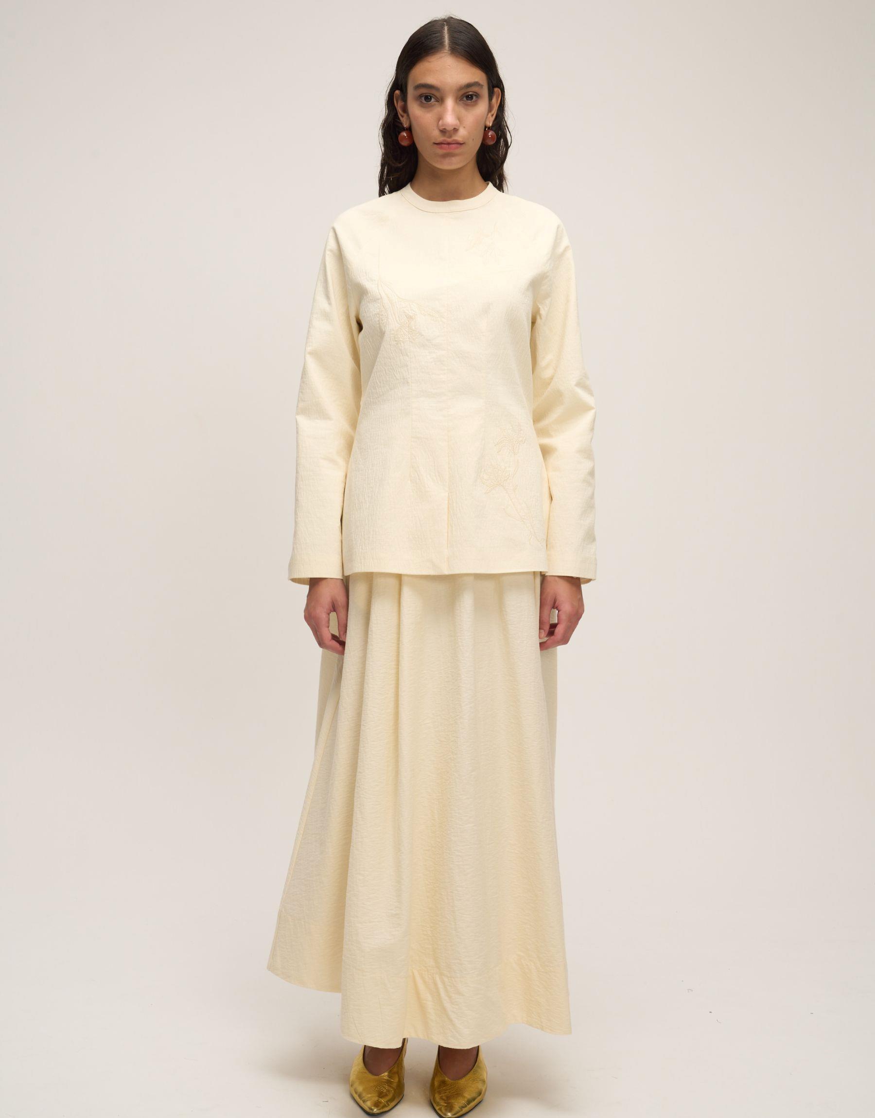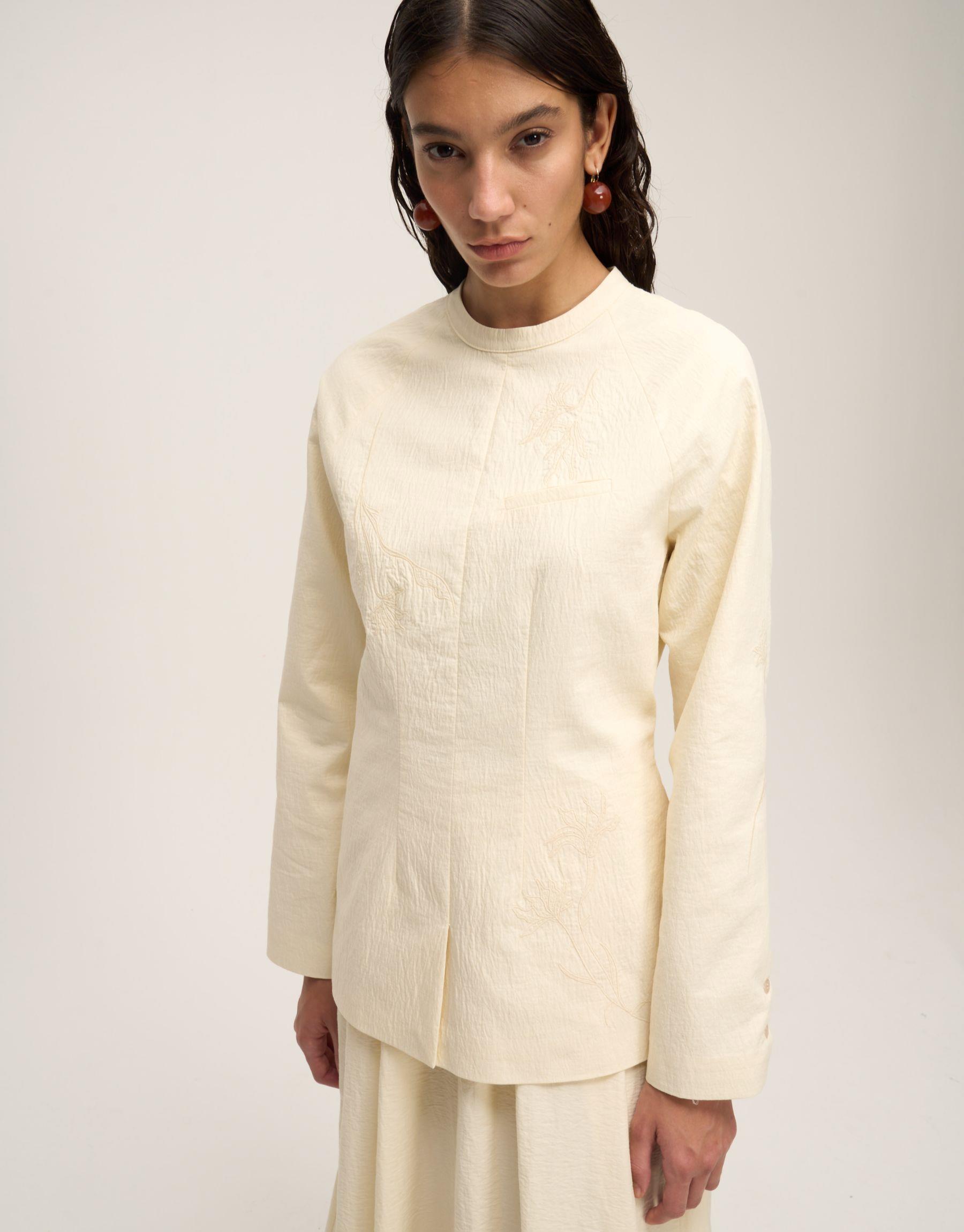 Bayan Ekru Nakış Detaylı Fit Bluz | Qooqstore