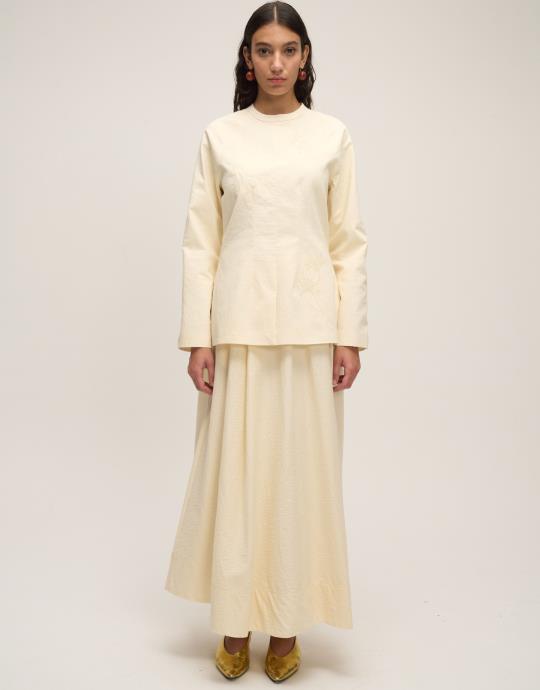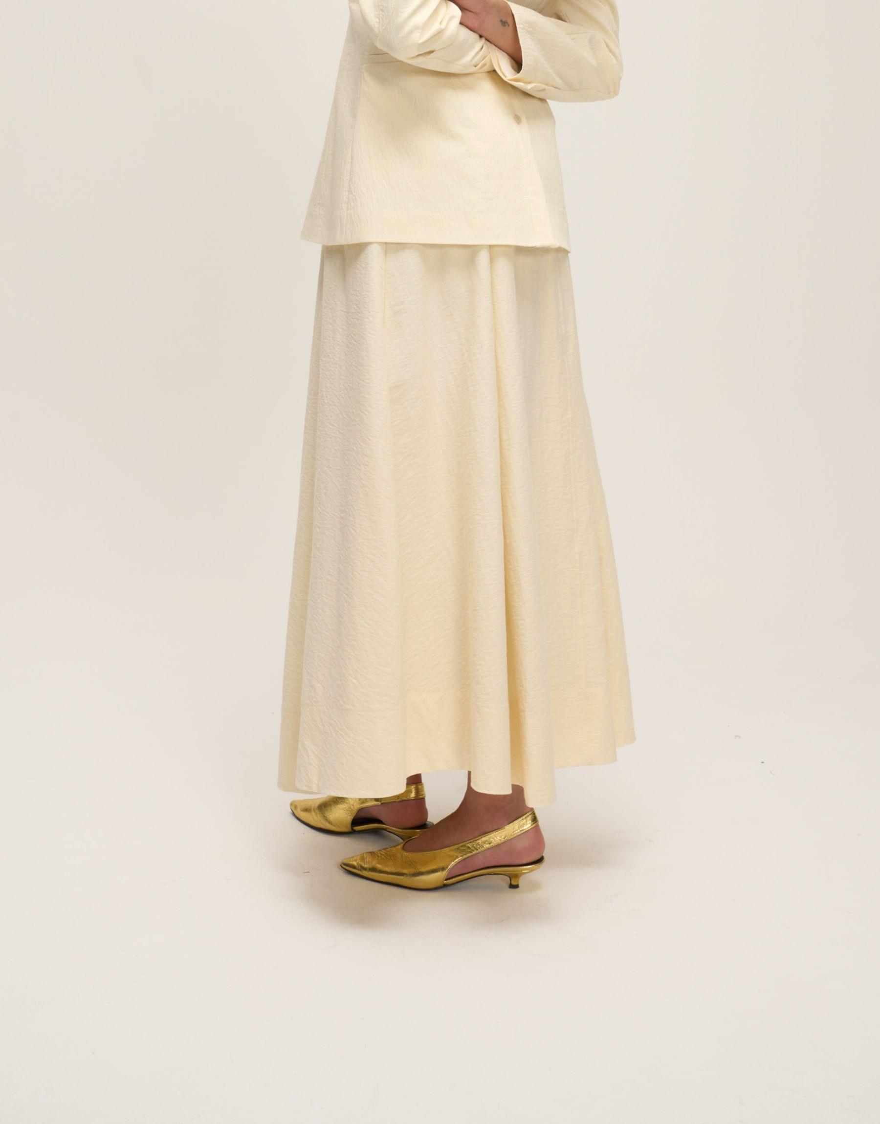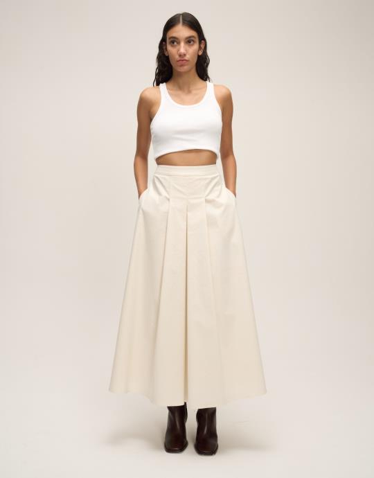 Bayan Ekru Pileli Crush Etek | Qooqstore