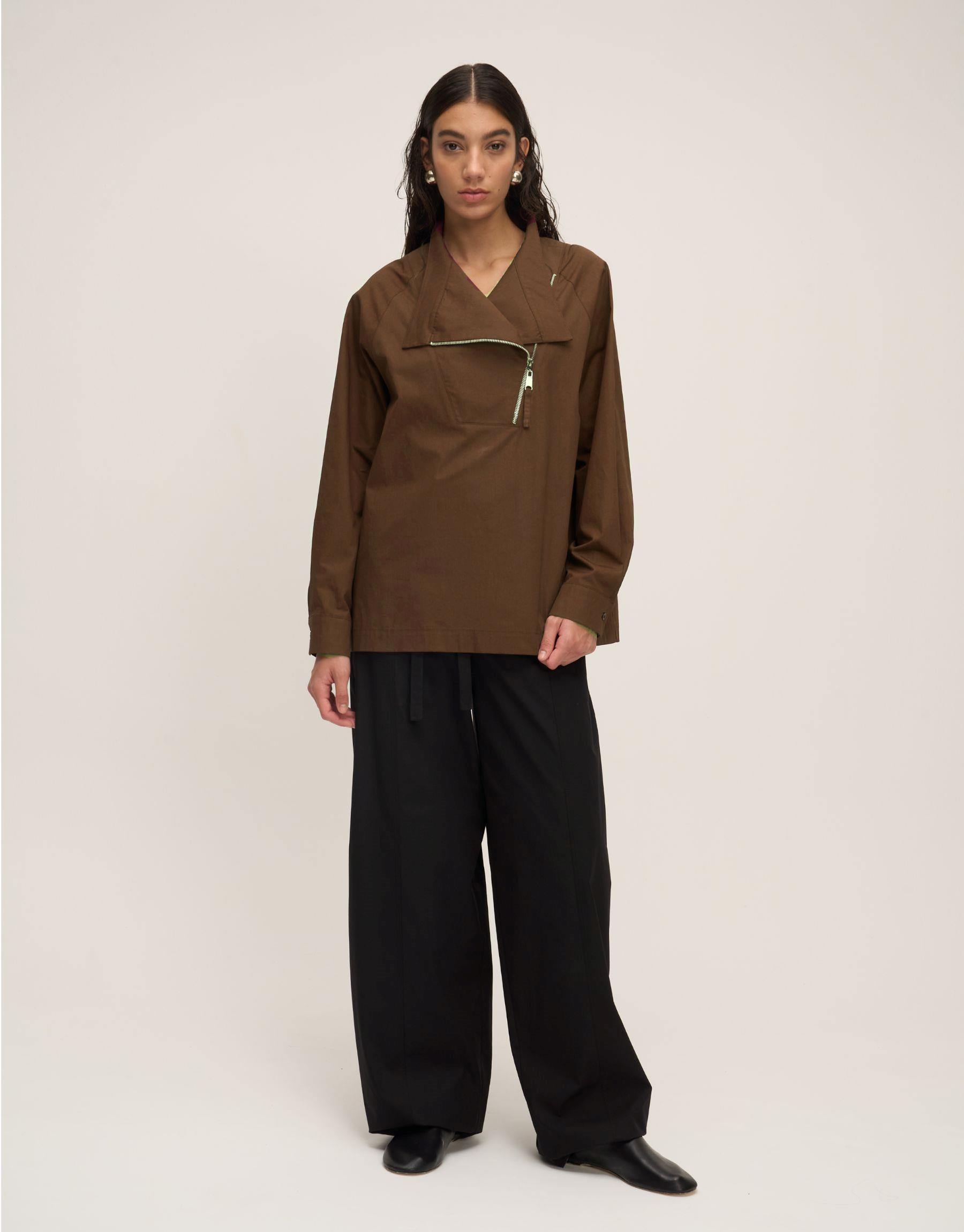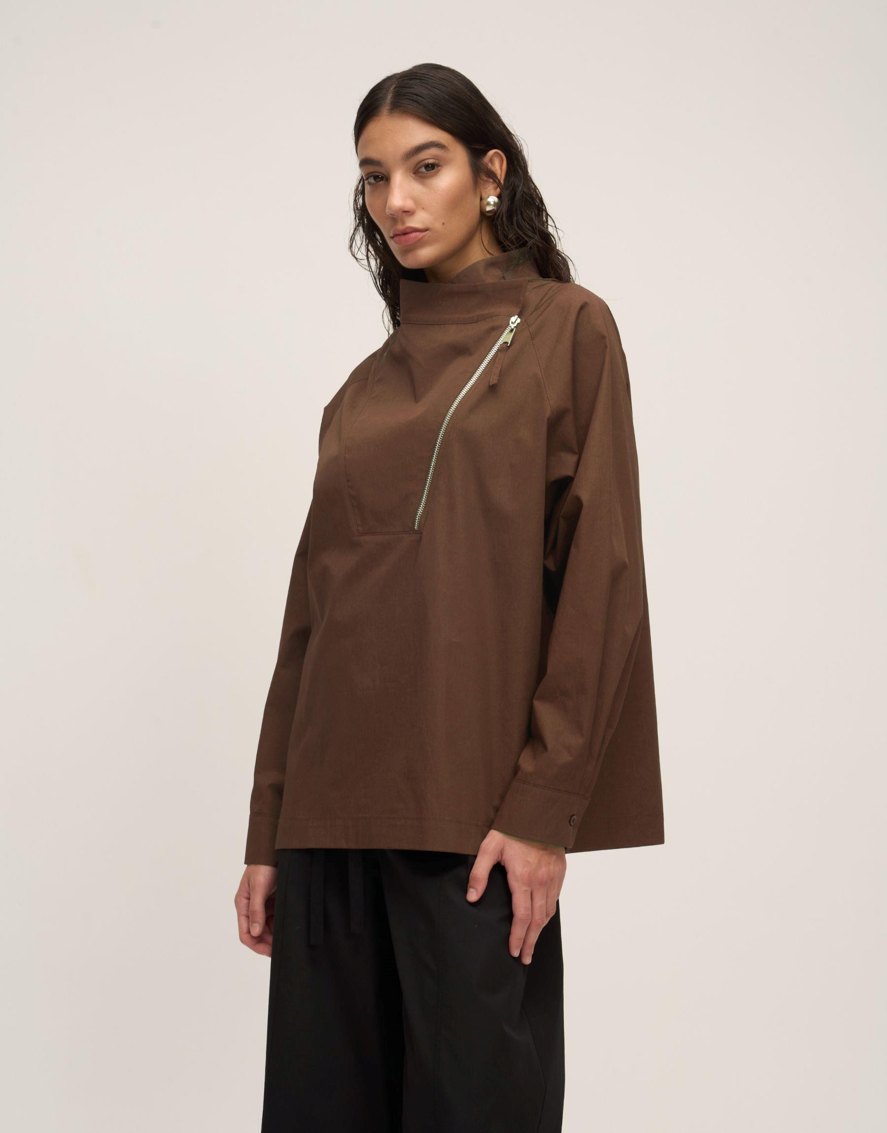 Bayan Kahve Fermuarlı Bluz | Qooqstore