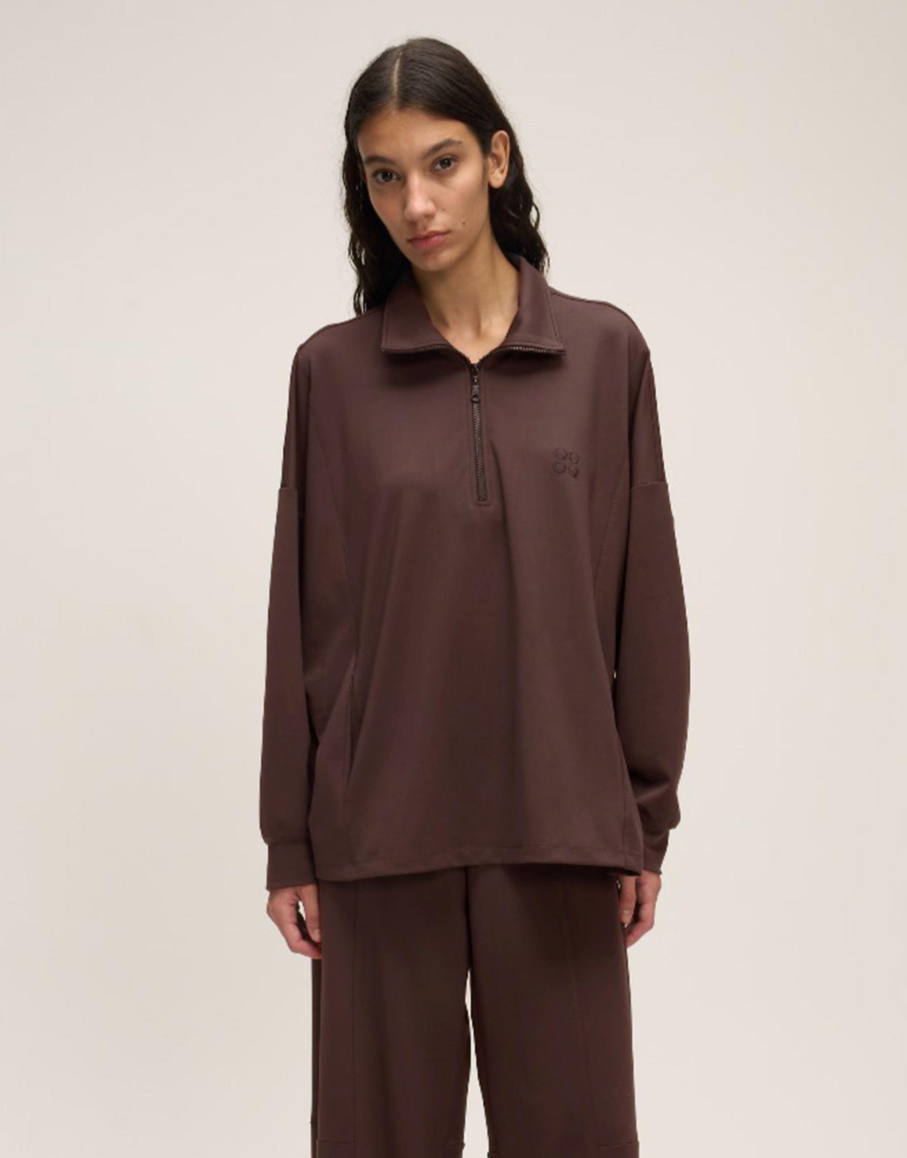Bayan Kahve Nakışlı Sweat | Qooqstore