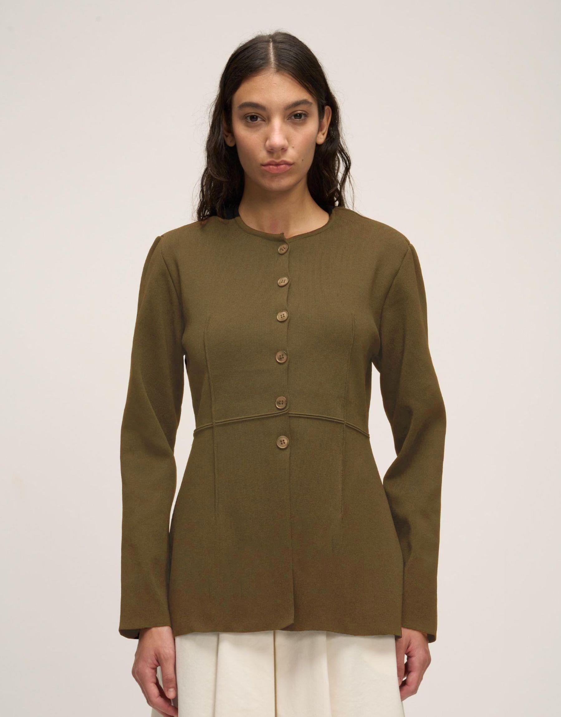 Bayan Haki Düğmeli Triko Hırka | Qooqstore